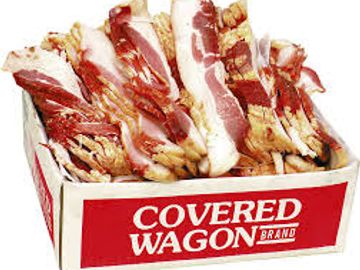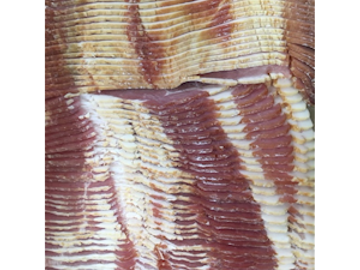 Bacon is a type of salt-cured pork. Bacon is prepared from several different cuts of meat, typically from the pork belly or from back cuts, which have less fat than the belly. It is eaten on its own, as a side dish, or used as a minor ingredient to flavour dishes.