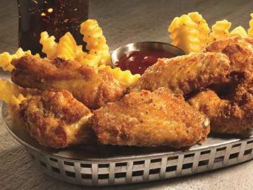 The chicken wing features two edible parts: the drumette, which resembles a smaller drumstick with white meat, and the flat, which contains tender white meat between two bones. Commonly known as bar food .